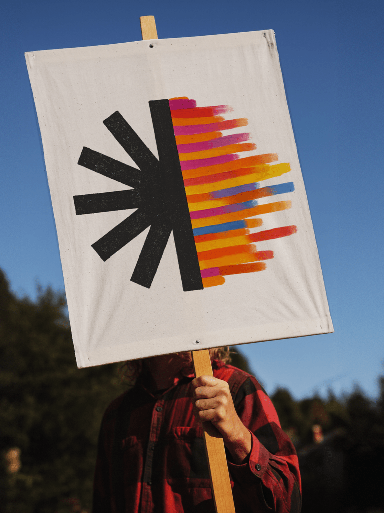 After endless concept sketching, we reduced the idea to its essence: five bold rays, forming only half a sun. The other half is left wide open for people to complete themselves. Because movements thrive when people see themselves in them, when they’re invited to participate—to help carry the cause forward.