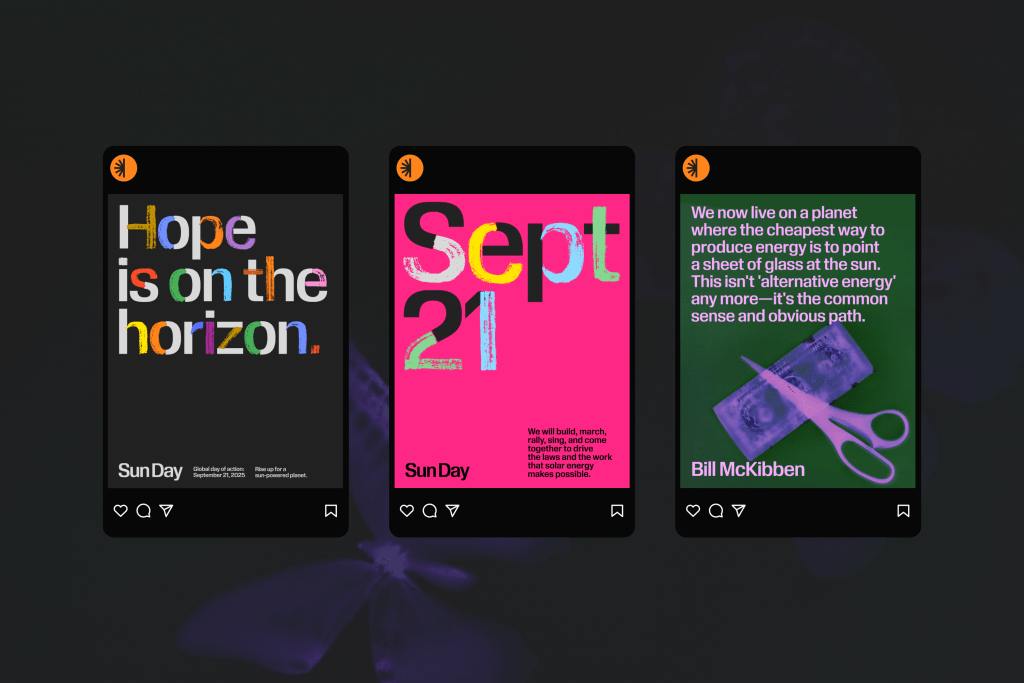 You’re exactly right. From the beginning, we knew Sun Day had to live as comfortably in the digital commons, social feeds and group messages as it did on wheat-pasted walls, protest banners, or classroom hallways.